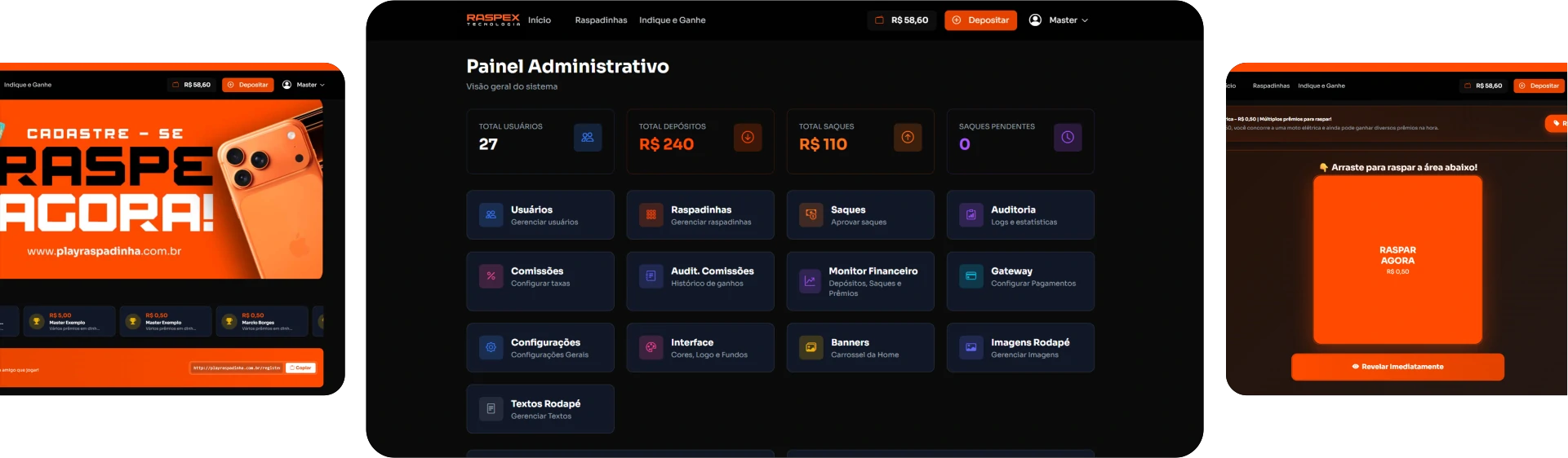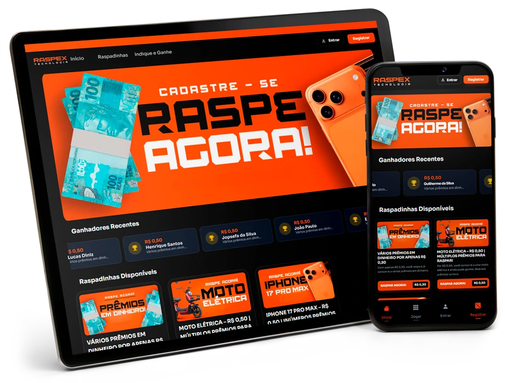 A Raspex não é um jogo. É uma plataforma tecnológica que fornece a infraestrutura necessária para operar raspadinhas digitais com controle, estabilidade e performance.